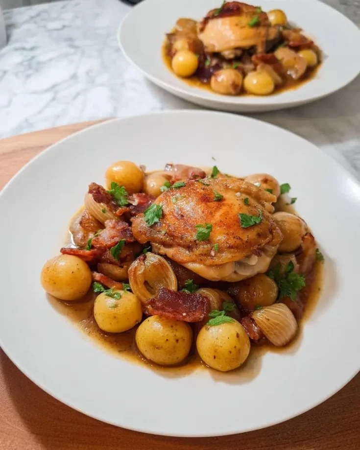 Fall flavors on a plate! The sweet and tangy glaze makes even basic chicken thighs look restaurant-worthy. I love making this when we have friends over because it looks impressive but is actually really forgiving. Plus, your house will smell absolutely amazing while it cooks.